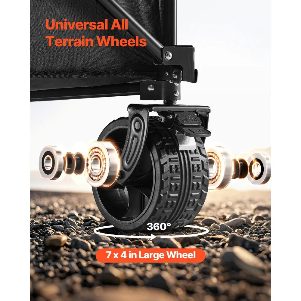 Foldable Wagon with Extended Tailgate, 450lbs & 300L Large Capacity Collapsible Sports Cart, Heavy Duty Folding Carts with All-Terrain Wheels, Outdoor Sports Cart for Groceries Camping